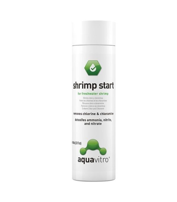 aquavitro® shrimp start™ es un acondicionador Premium completo para su acuario de gambitas de agua dulce. Elimina y desintoxica el cloro, la cloramina, el amoníaco, los nitritos y los nitratos del agua de la llave. Convierte el amoníaco en amina, un derivado del nitrógeno que es seguro y atóxico, que es eliminado fácilmente por el filtro biológico del acuario. Puede usarse durante la etapa de maduración del acuario para aliviar la toxicidad del amoníaco y los nitratos, permitiendo que el biofiltro los elimine más eficientemente. También desintoxicará los metales pesados que se encuentran en el agua de la llave. shrimp start™ no es ácido y no afectará el valor del pH. Úselo desde el inicio de su acuario y siempre que añada o reemplace agua nueva.