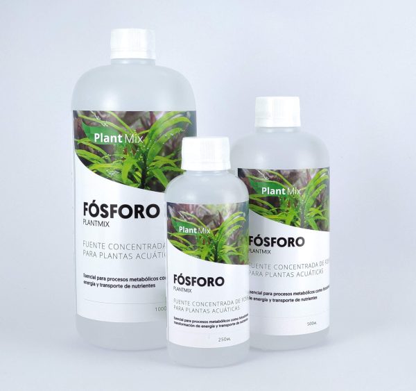 Fundamental para procesos metabólicos como fotosíntesis, transformación de energía y transporte de nutrientes. Macronutriente esencial para el desarrollo vigoroso. Libre de nitratos y cloruros. Aunque el fosfato puede generar problemas de algas cuando lo tenemos en exceso, en acuarios con metabolismo acelerado (High Tech) con aporte extra de CO2 y alta iluminación, el fosfato puede consumirse llegando a 0 por lo que se necesita de su aporte vía fertilizantes líquidos.
